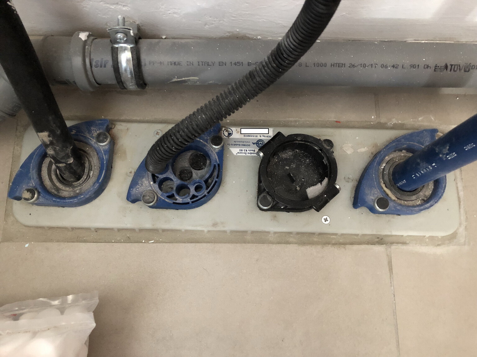 Bei uns wurde das vor dem Gießen der Bodenplatte schon mit eingebaut und angeschlossen. Für den vierten Anschluss muss es auch noch einen passenden Deckel geben!