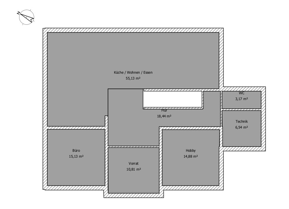 Das WC im Süden ohne Fenster, dafür Panoramafenster im Norden im Flur ist in unseren Gefilden schon etwas mutig 😉