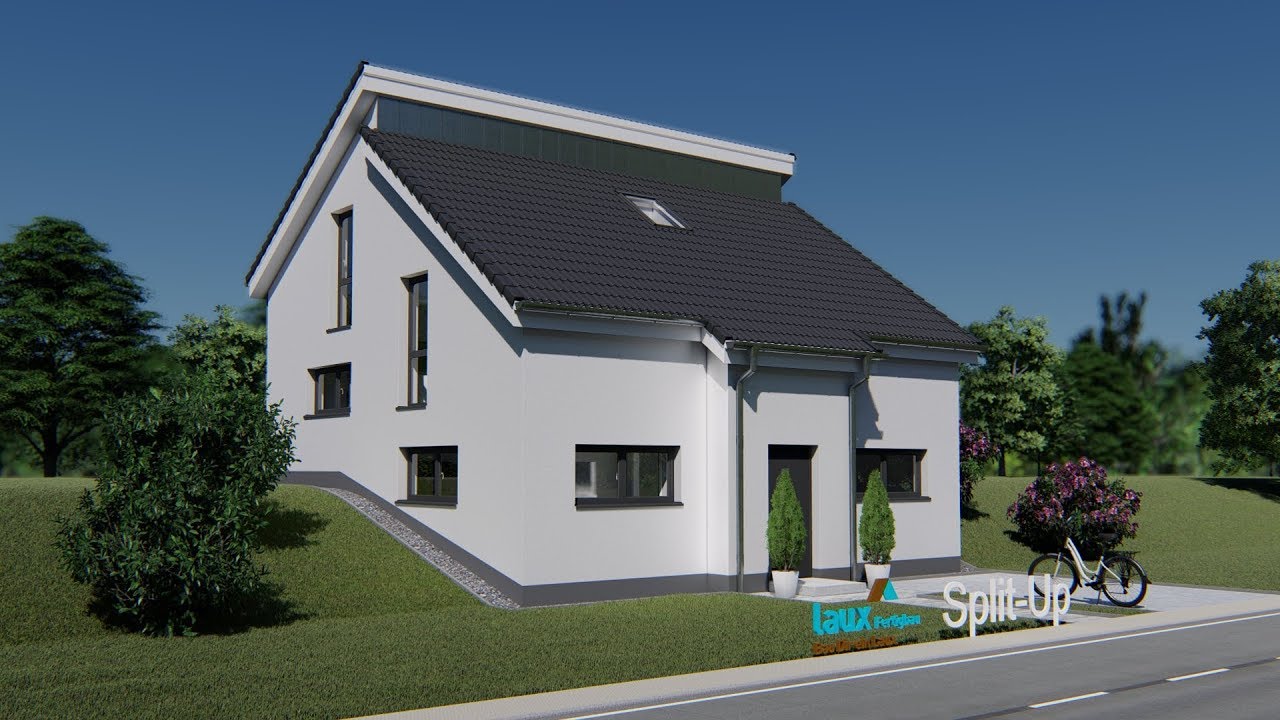 Das Haus ist von Laux Fertigbau - ich hab es durch die Google Bildersuche gefunden (Split Level versetztes Pultdach).Meine Kinder würden sofort sagen; Papa, dürfen wir eine Rutsche im Inneren einbauen ?
