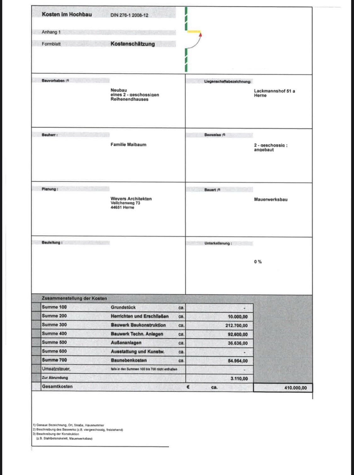 Hallöchen - ein Weilchen ist vergangen und zwischenzeitlich hatten wir den einen oder anderen netten Termin mit Architekten und sind ein ganzes Stückchen voran gekommen. Haben viele Infos bekommen und sogar schon die erste Kostenschätzung was der Spaß hier kosten könnte. Mir war bewusst das die Preise ordentlich angestiegen sind, trotzdem war ich etwas erstaunt über die Preise die mir so um die Ohren flogen. Ein Eigenheim bauen ist wirklich Luxus. Ich dachte mit dem vorhandenen Grundstück wäre es da etwas einfacher. Auf den Keller haben wir auch schon verzichtet und trotzdem soll’s noch „so teuer“ werden. Klar sind das erstmal alles nur grobe Zahlen aber doch schon mal eine Richtung in die es geht. Ich bin gespannt wenn die nächsten Angebote eintrudeln in wie weit sich da preislich was tun wird. Ich hänge mal allen die Info dran vom Architekten. Er hat sich quasi an alle Vorgaben des B-Plans gehalten und das „beste“ aus der Fläche rausgeholt sodass wir auf ca. 135-140 qm Wohnfläche kommen. Vielleicht ist da für den einen oder anderen Leser ja auch interessant.