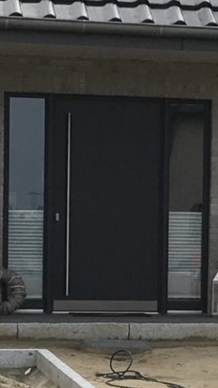 Es gibt von Groke auch noch die Premium Aktionstür, die beidseitig flügelüberdeckend ist für deutlich unter 4000 €. „Leider“ hat uns die Landhaustür von Schüco so gut gefallen, dass wir uns gegen die deutlich günstigere Groke Tür entschieden haben