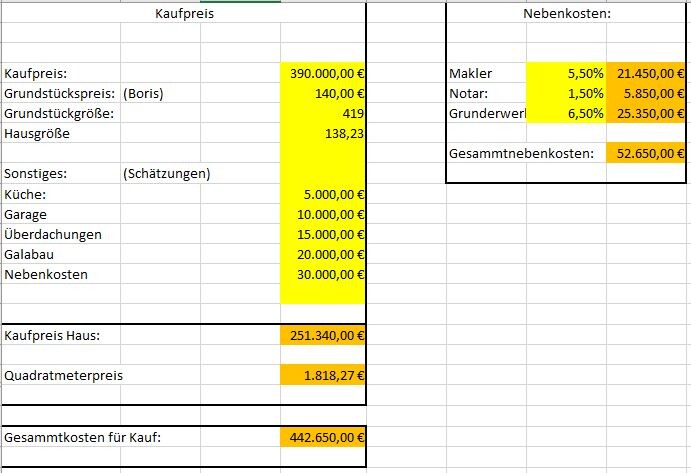 Was kostet sowasbei Euch neu?Ich denke das es auch nicht viel teuer oder günstiger sein wird. Habe ja noch keine Erfahrung mit dem Hausbau.Habe aber mal versucht dies auf einen Quadratmeterpreis runterzurechnen. Komme hier auch ca. 1800 € aber alles fertig. Ich denke das es wenn man neubaut doch vermutlich noch Teurer sein wird. Man liest hier ja immer von ca. 2000 €