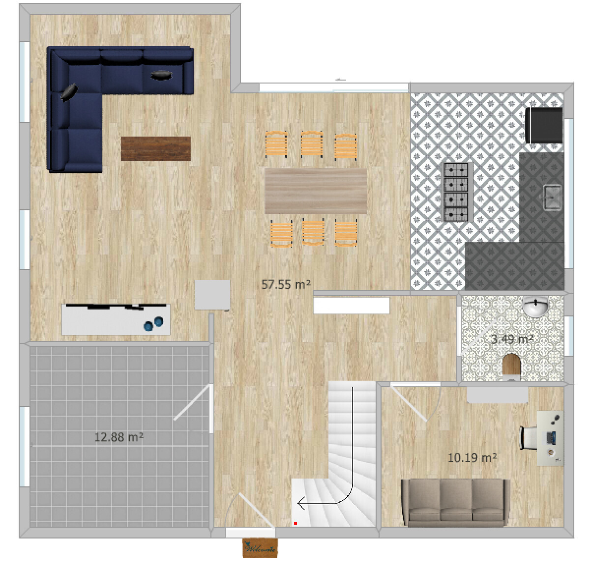 Um nicht mit einem leeren Blatt Papier beim Gespräch zu erscheinen, habe ich spaßeshalber mal zwei Ideen zu Papier gebracht, die wahrscheinlich gar keinen Sinn machen Ich habe hier weder auf die m2 geachtet, noch ob es mit Türen Sinn ergibt. Es ging nur darum, unsere Gedanken hinsichtlich der Aufteilung zu strukturieren. Wenn euch etwas auffällt, freue ich mich auf Hinweise. Beim ersten Entwurf würden noch eine kleine schmale Speisekammer fehlen.