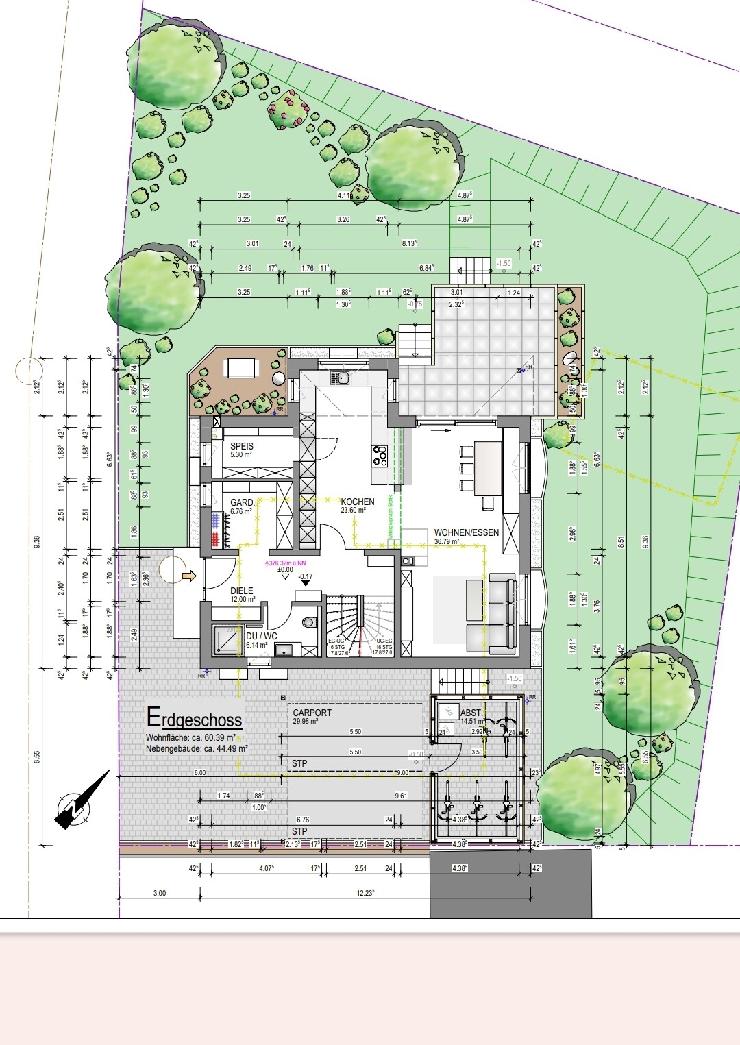 Braucht es die Treppe auf das niedrigere Gartenniveu im Süden/beim Carport eigentlich? Wir hatten überlegt, das zu streichen und stattdessen das Haus weiter in den Süden zu schieben, was meint ihr?
