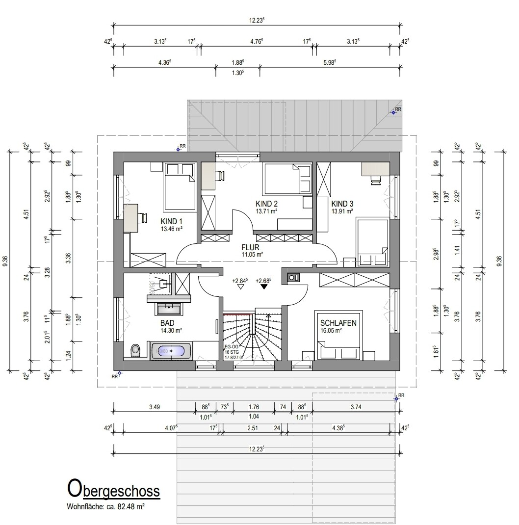 Kinderzimmer nur je 1 Fenster (anscheinend erste Budgetanpassung - davor waren in 2 Kinderzimmern je 2 Fenster über Eck und im Mittleren eine sehr große/breite Fensterfläche, das hatte uns gut gefallen!).