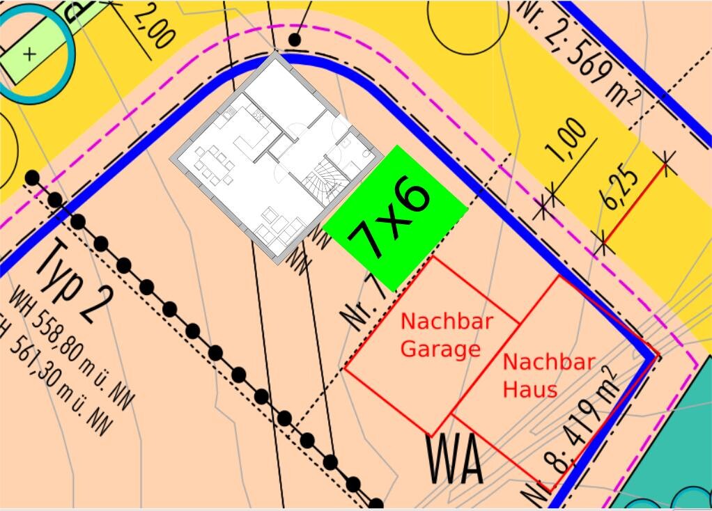 Wo darfst Du überhaupt bauen? = Baugrenzen/-Linien? Abstand zum Nachbarn? Platzierung der Garage?