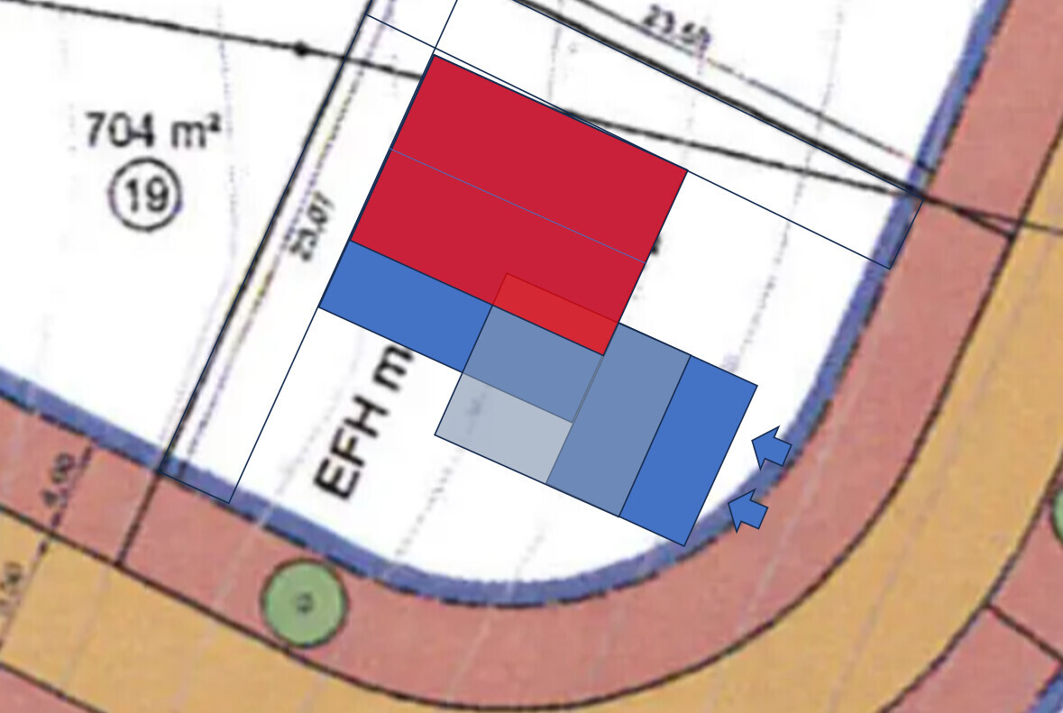 Sie haben das Haus mit 3m Abstand zur Straße platziert.Bist Du da sicher? Der Bebauungsplan sagt Abstand 4 m???