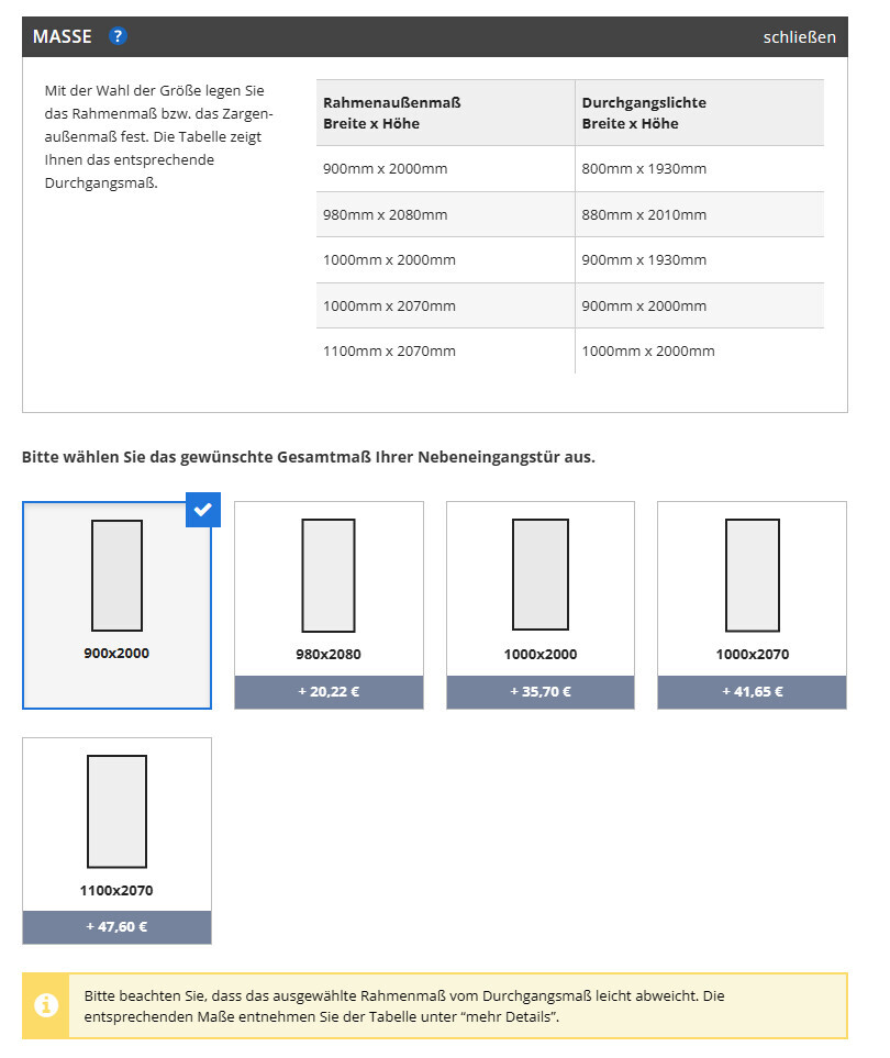 So z.B. im Konfigurator mit weiteren Infos zum dann nötigen Rohbaumaß: