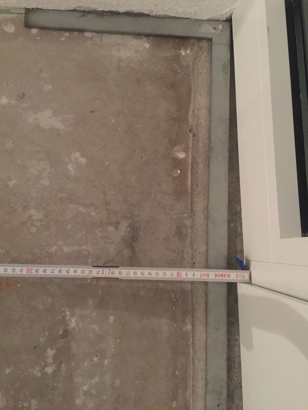 Die Firma stellt sich auf den Standpunkt das quasi das ganze Haus schief wäre. was allerdings nicht stimmt. Es gab eine rechtwinklig zur Wand abgestellte Estrichkante, mit genug Montagefreiheit, ebenso ist unser Hauseingang eingerückt und es gab die Möglichkeit die Maße auf der Bodenplatte zu nehmen.