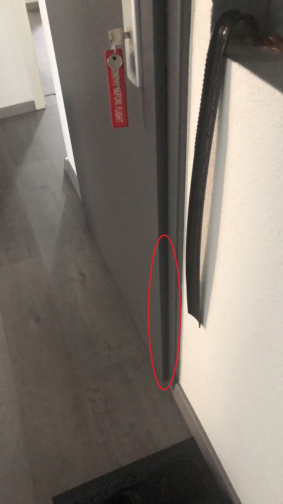 Ich habe nun gesehen, dass die Türe unten ganz an der Zarge anliegt, oben jedoch nicht.