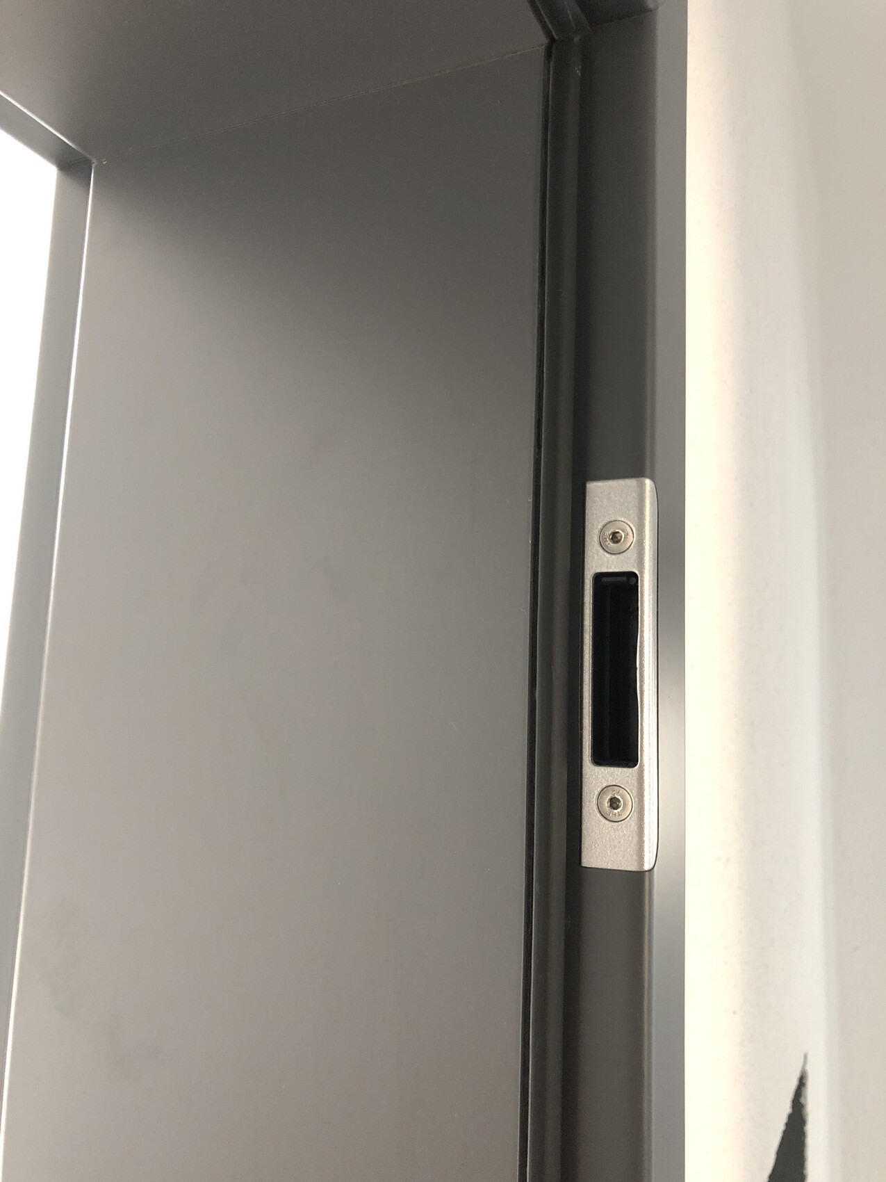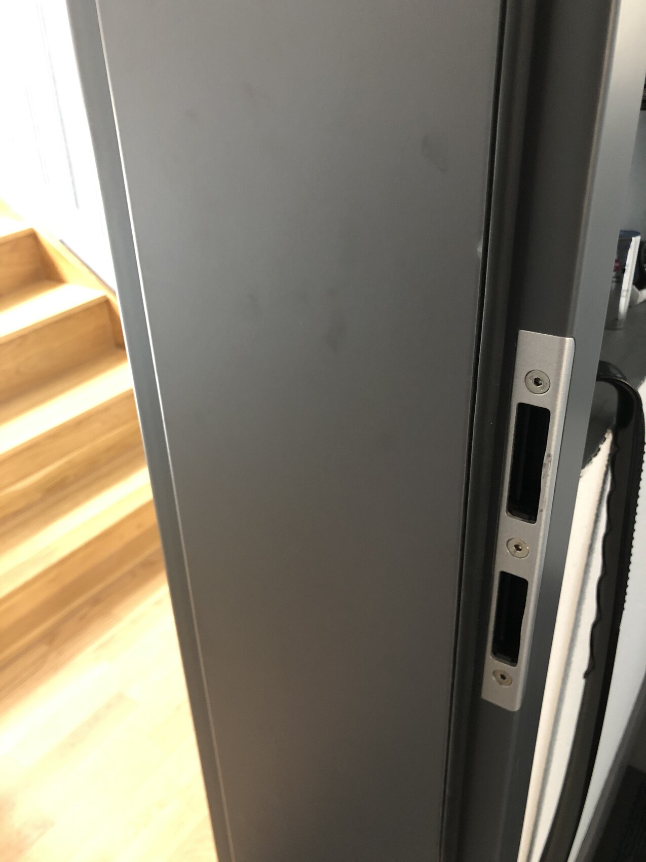 Die Türe schleift nicht und stößt auch nicht an, auch ins Schloss fallen tut sie ohne Probleme, es geht lediglich ums Abschließen, ich hoffe man sieht den Spalt auf den Bildern.