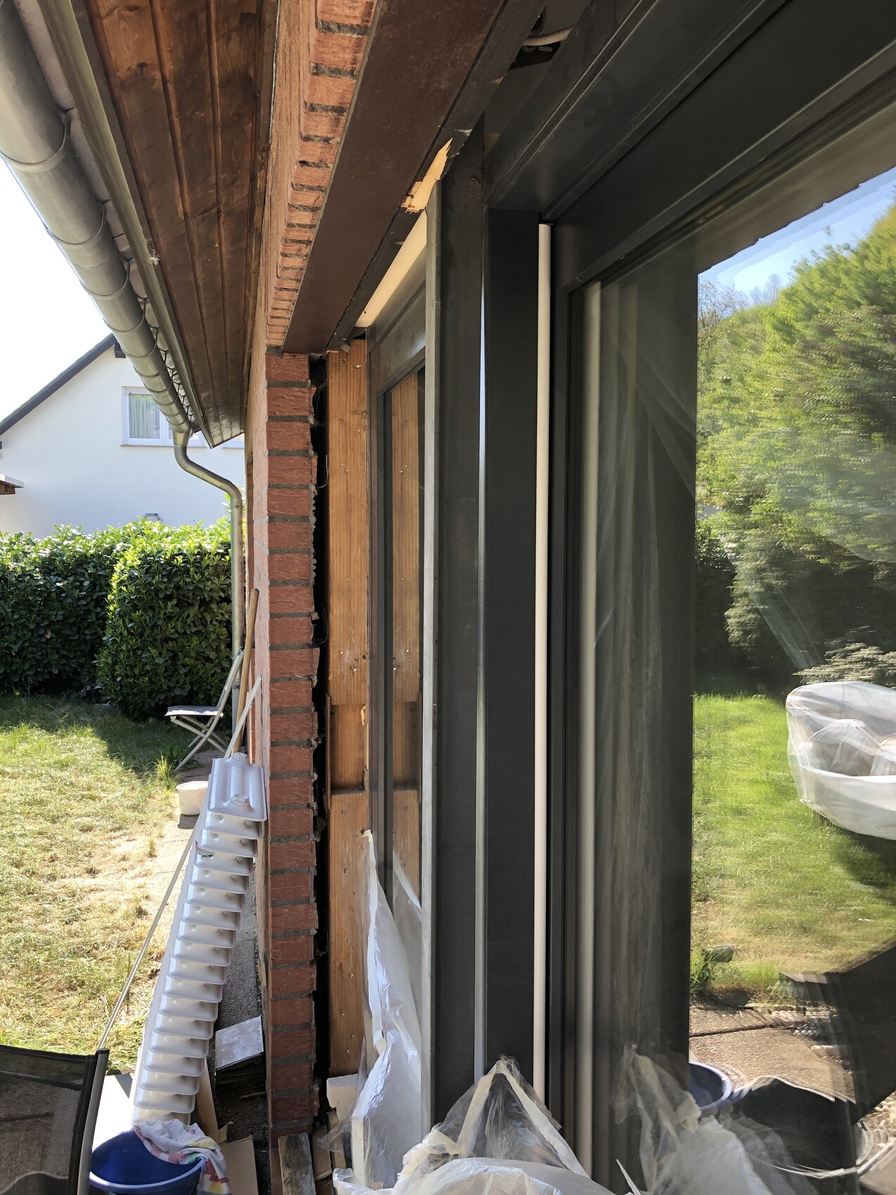 Problem sind zwei Eisenträger senkrecht von außen, die nicht ernfernt werden können und auch Eisenträger oberhalb der Tür. Die alte Tür war da mehr "drumherum" gebaut. Werde morgen noch mal Fotos machen und reinstellen. Rollokasten kommt weg, gibt neue Raffstores von außen.