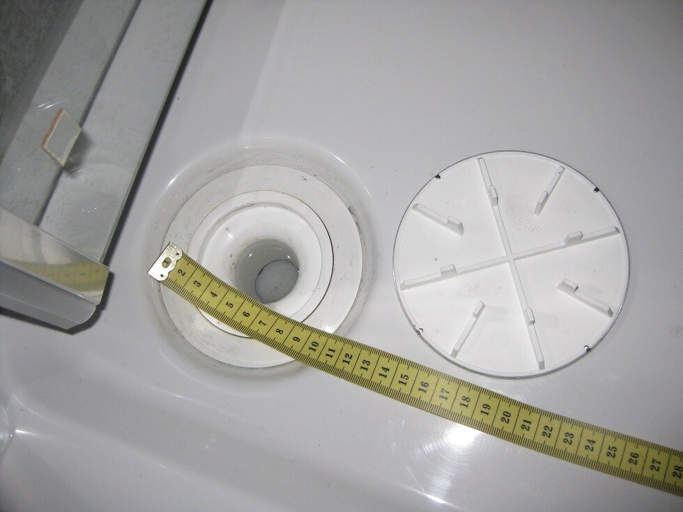 Hier mal ein Foto des Abflusses. Ich habe da noch kein Sieb entdeckt. Allerdings habe ich auch nicht energisch an dem weißen Plastik gezerrt.