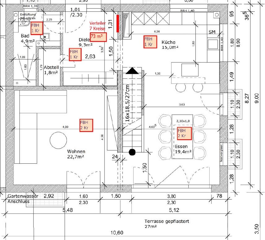 @driver55: das ist zwar nicht die finale Version der Grundrisse, weil es ein paar Modifikationen gab (u.a. Tausch Küche mit Wohnzimmer), aber die haben wir so als Bauantrag eingereicht, ja. Der Heizungsbauer hat die Berechnung jedoch nicht neu gemacht, weil er meinte, die Anzahl der Kreise bzw. beheizte Fläche bleibt gleich.