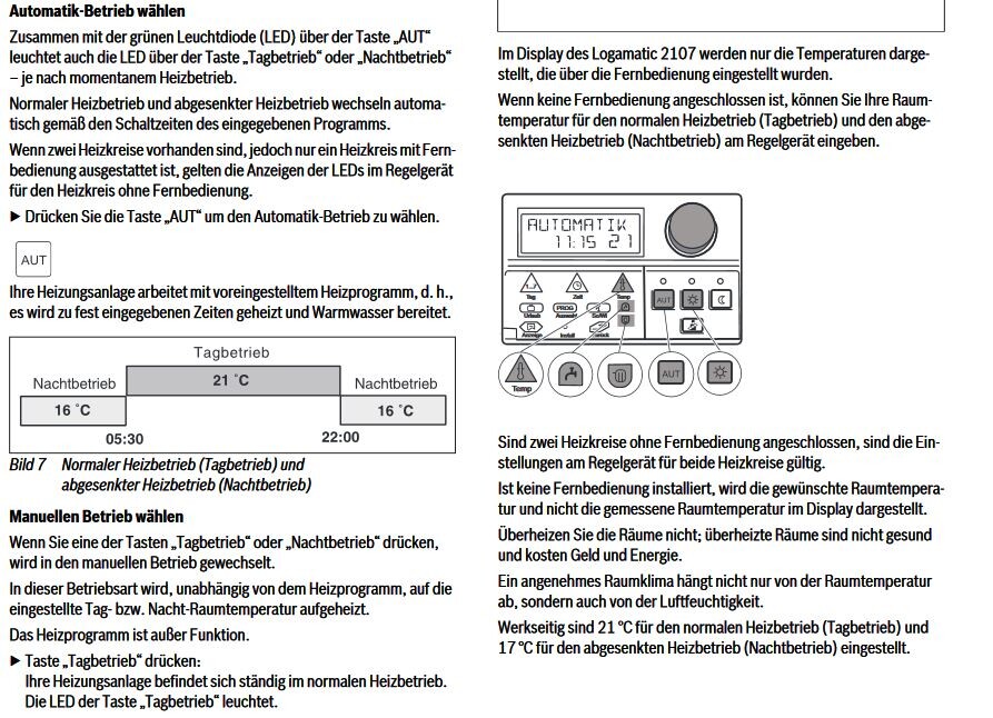 temperatur für den normalen Heizbetrieb (Tagbetrieb) und den abge-