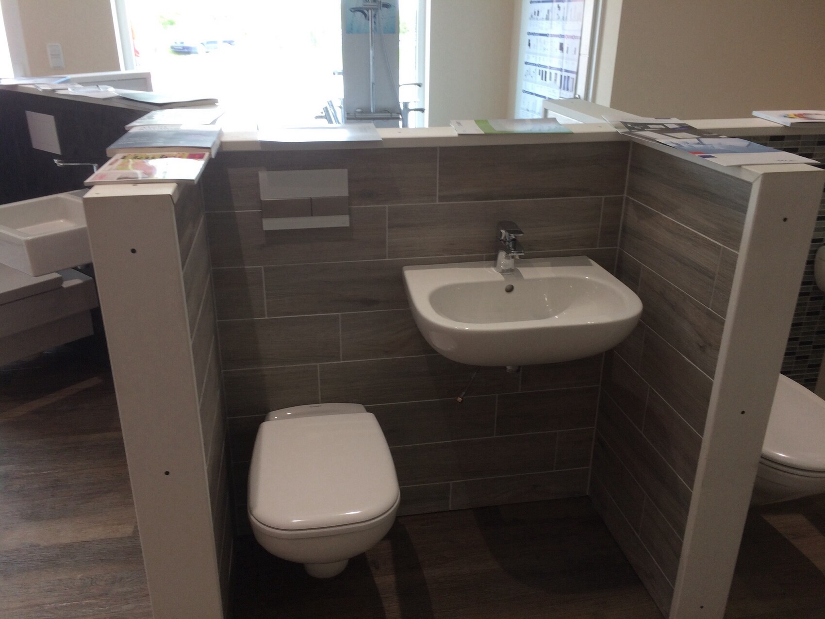 Heut war Bemusterung Sanitär. Firma W. hat den Auftrag. Der Showroom besteht aus fünf Exponaten von Duravit, Kaldewei, Villeroy & Boch, Keramag. Zwei sind Standard, drei kosten extra. Duravit hat gewonnen. Standard und hübsch. Solche Bemusterungen liebe ich, nicht zu viel, nicht erschlagend.