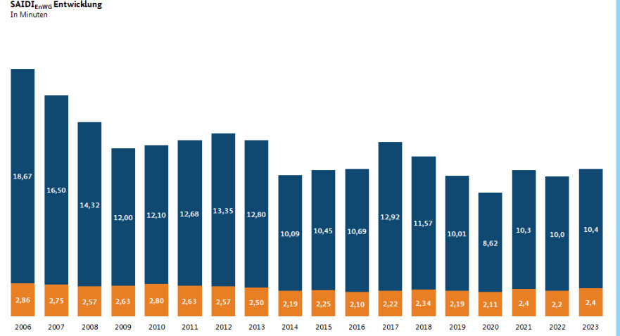 Wird mit Sicherheit nicht das letzte seiner Art gewesen sein...Zumindest der Durchschnitt hat sich nicht geändert. Je Verbraucher (= Haushalt) kannst Du pro Jahr mit 2 Minuten Stromausfall (Niederspannung ist orange) rechnen. Und das beständig seit 20 Jahren. Man könnte bei der Bundesnetzagentur auch noch nach Bundesländern Statistiken und wirklich jede gemeldete Unterbrechung in einer Excel-Tabelle anschauen. Aber die Daten hier reichen mir völlig aus, um das allgemeine Stromausfallrisiko als nicht gegeben zu klassifizieren. Natürlich kann es immer Einzelfälle geben. Aber das reicht (für mich) nicht aus, um sich ernsthaft darüber Gedanken zu machen.