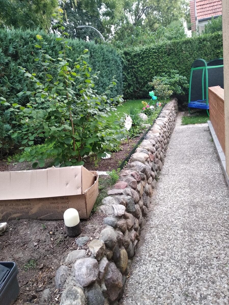 Und die Steine: 2m³ Container. vielleicht 150 Euro. Der Rest ist an einem Wochenende gemacht.