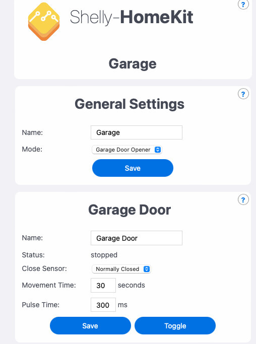 Ich habe nun den Shelly 1 erfolgreich mit Spannung versorgt, HomeKit Firmware aufgespielt und dort den Shelly als Garagenöffner konfiguriert.