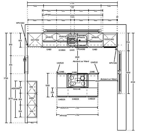 Eventuell kann man mit einer mittigen 2-Meter breiten Wand Essen vom Wohnen trennen?
