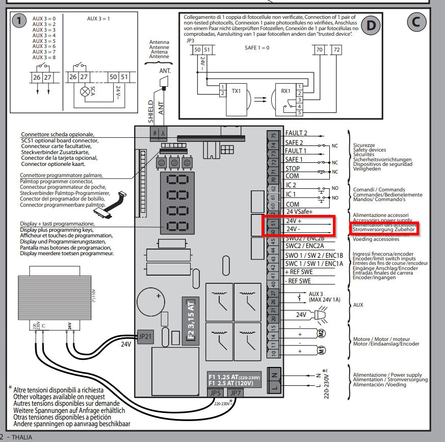 Diese wird mit 230 V Versorgt und hat einen eingebauten 24 V Trafo.