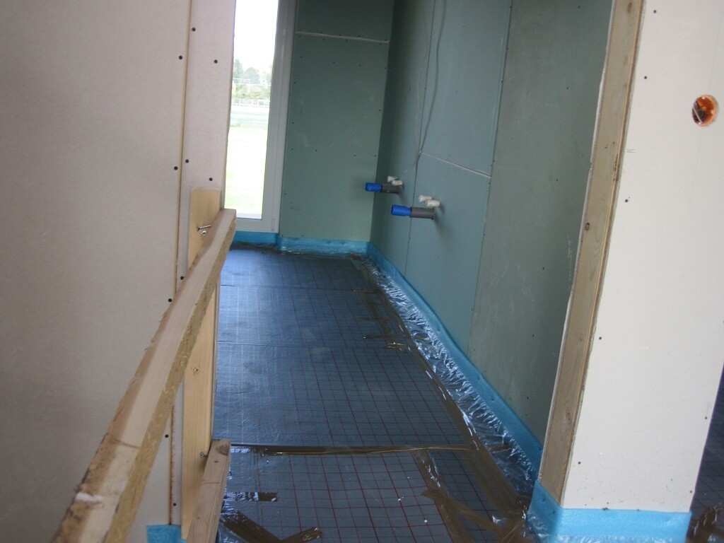 das dann noch abdichten, Fliesen darauf,