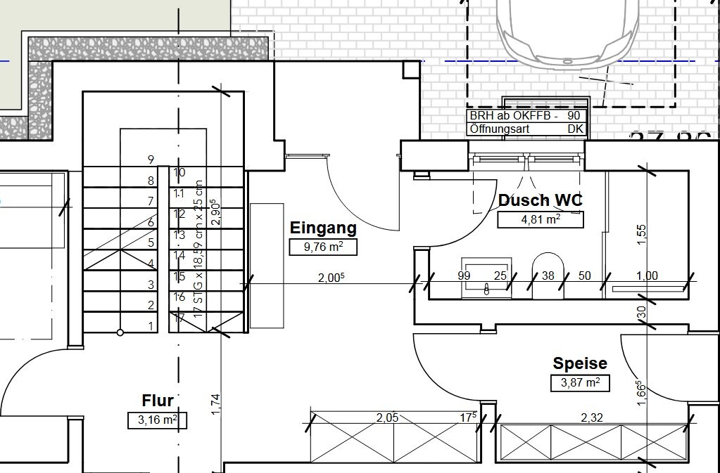 - das Kinderbad im OG hat eine 73er Tür.. daneben hat kein Lichtschalter Platz, Dusche ist dennoch im Rohbaumaß 90, also dann reelle 80?