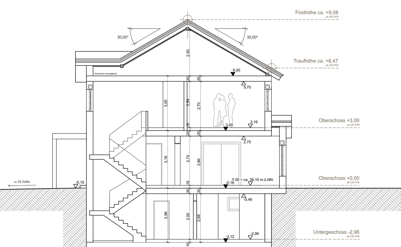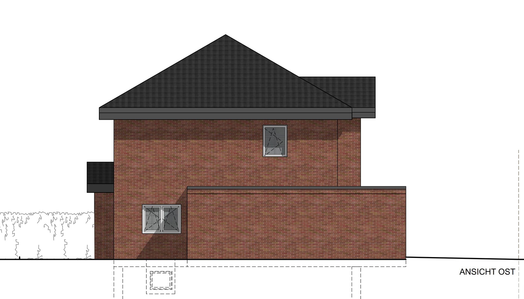 Ja, das war auch einer unserer Hauptkritikpunkte an dem Entwurf. Wir hatten angeregt zumindest die Fenster auf der linken Seite zu zentrieren. Dafür hätten aber die Installationen im Bad oben geändert werden müssen, mit dann wohl kompliziertem Verlauf der Abwasserleitungen an der Außenwand, so dass dieser Punkt wieder verworfen wurde. Wir haben uns am Ende damit getröstet, dass man selten direkt frontal auf das Haus schaut und es von schräg weniger auffällt. Auf der Südseite fällt die Asymmetrie deutlich weniger auf.Sorry, aber für so solche Gedankengänge und Argumente, sowie als auch, habe ich kein Verständnis.In meinen Augen ist der Entwurf misslungen und gehört somit nicht gebaut.