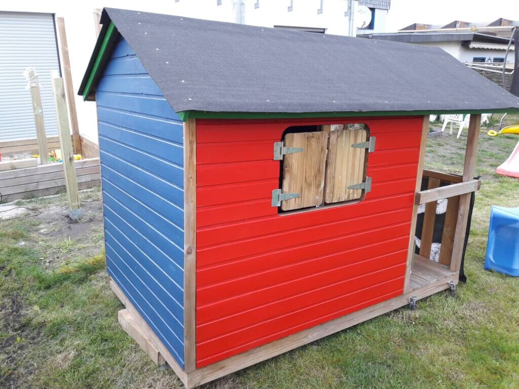 Wir haben ein altes Kinderspielhaus erworben, welches wir zunächst zu uns bekommen mussten. Wir konnten es dank Hilfe von Freunden am Stück retten. Lediglich die Pfosten fehlen noch.