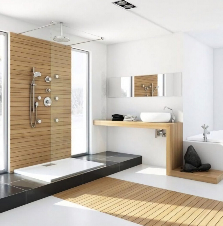 wir bauen mit einem Bauträger und die vertraglich-gebundene Fliesenfirma hat eine gute Auswahl bei den Fliesen. Eine Fliese in Holz-optik die wir gerne hätten konnten sie aber uns nicht anbieten. Es geht um eine Fliese für das Bad, wie wir online gefunden haben: