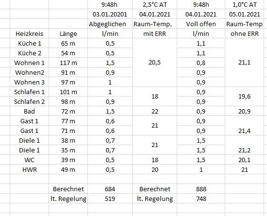 Oder stellt man jetzt schon an den Durchflüssen herum? Laut den heute gemessen Temperaturen sind ja alle Räume bis aufs Bad im Soll, kann man also schon drosseln damit evtl. das Bad schon wärmer wird? Oder sollte man noch die Finger von der Anlage lassen? In wie weit funkt mir das Fenster-Lüften des Hauses in den Abgleich mit hinein, die Kontrollierte-Wohnraumlüftung läuft zwar aber die Regierung meint trotzdem immer noch Fenster kippen zu müssen.