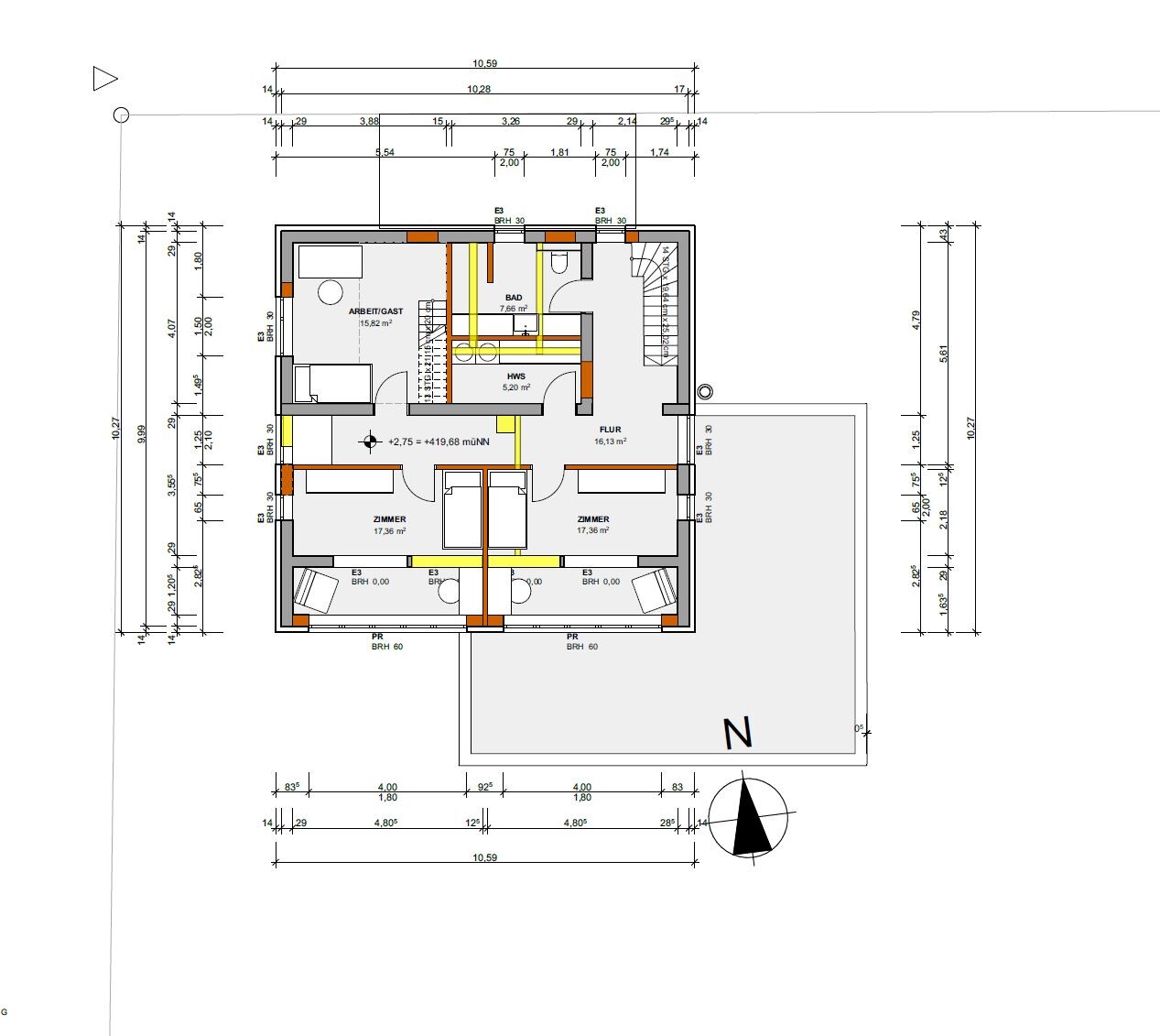 Im EG gehört das Bad unter das Bad im OG.