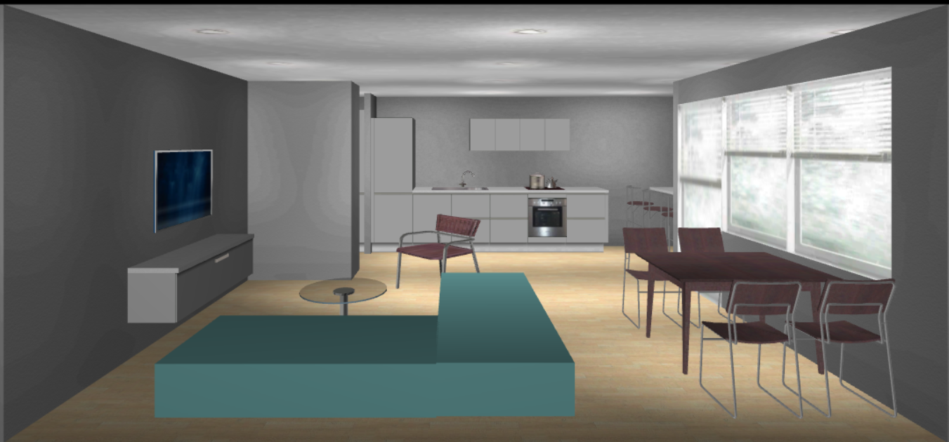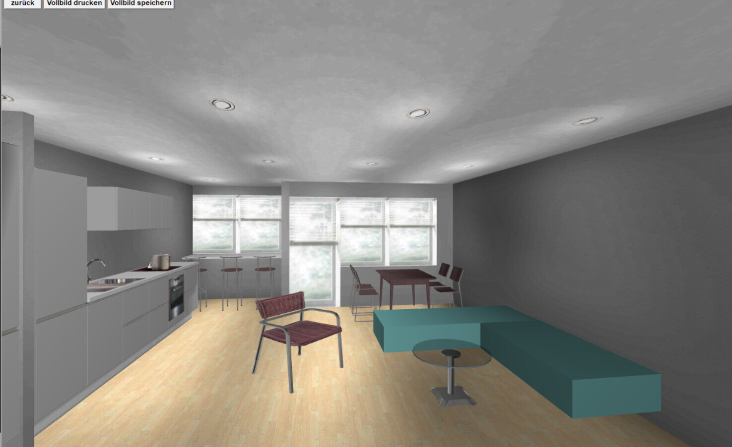 Eckbank geht auch nicht, die Küche müsste dann zu kurz werden. Du brauchst min 3m ohne Deckseiten.