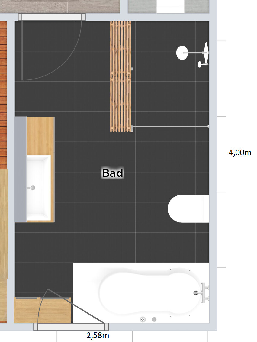 Unser Bad ist 2,58x4,00m groß und wir möchten eigentlich nur eine bodengleiche Dusche mit 1,40x1,00m und keinen allzu großen waschtisch, wir sind uns auch unsicher ob wir überhaupt 2 Waschbecken möchten ^^