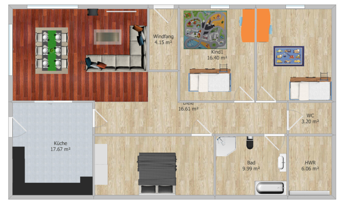 Also Referenzgrundriss, haben wir das Bungalow Modell "Bungalow 131" von Town & Country verwendet, da dieses von der Ausrichtung und der einfachen Art am geeignetsten scheint.
