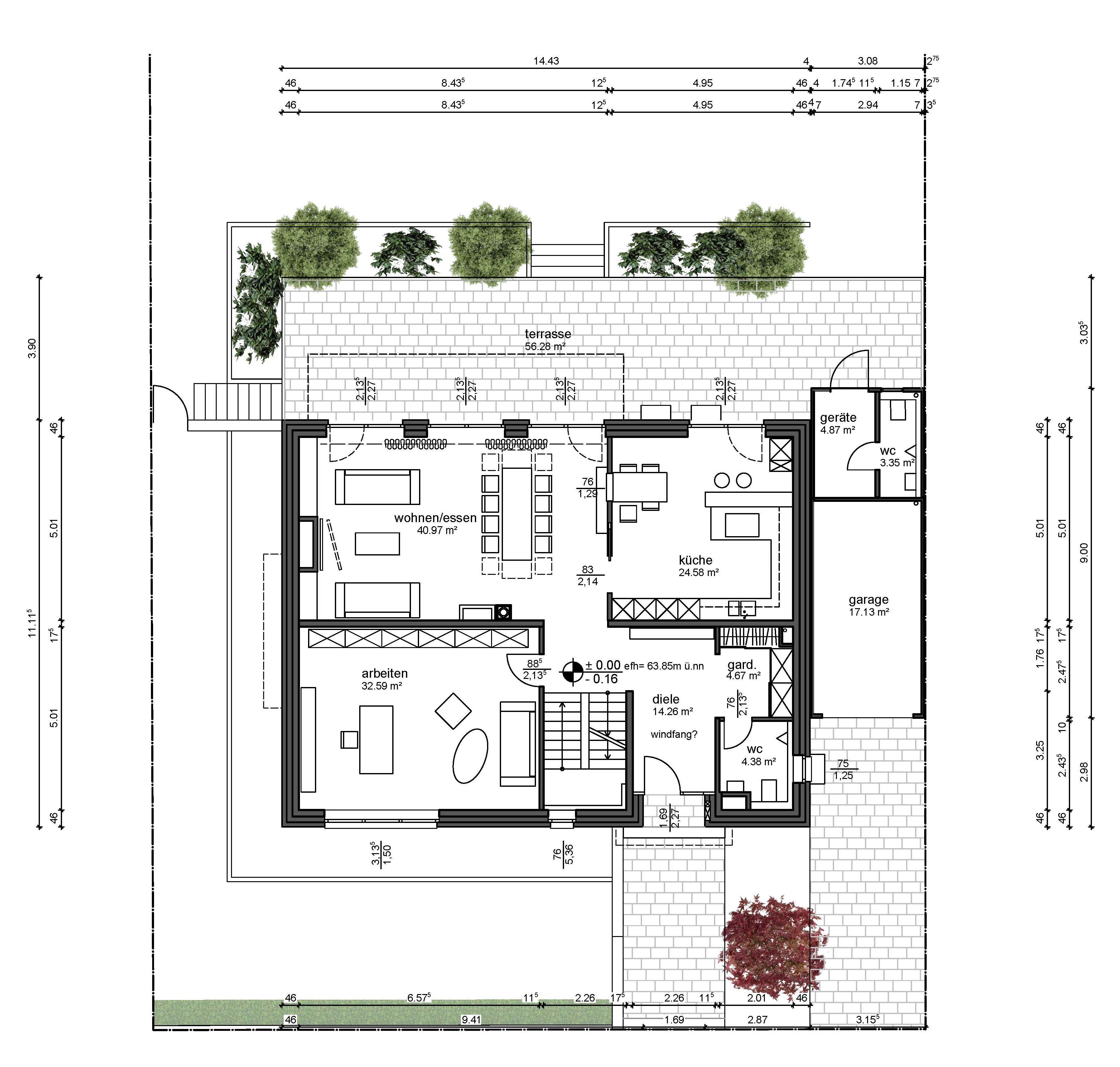 - evtl. Hauswirtschaftsraum mit Waschmaschine und Trockner (alternativ OG)
