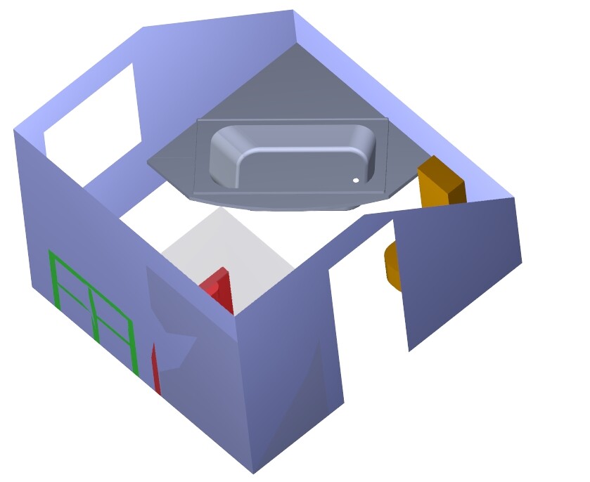 wir wollen eine Badewanne im 45°-Winkel zur Wand einbauen. (ein ungefähres Modell des Bades - siehe Bild)