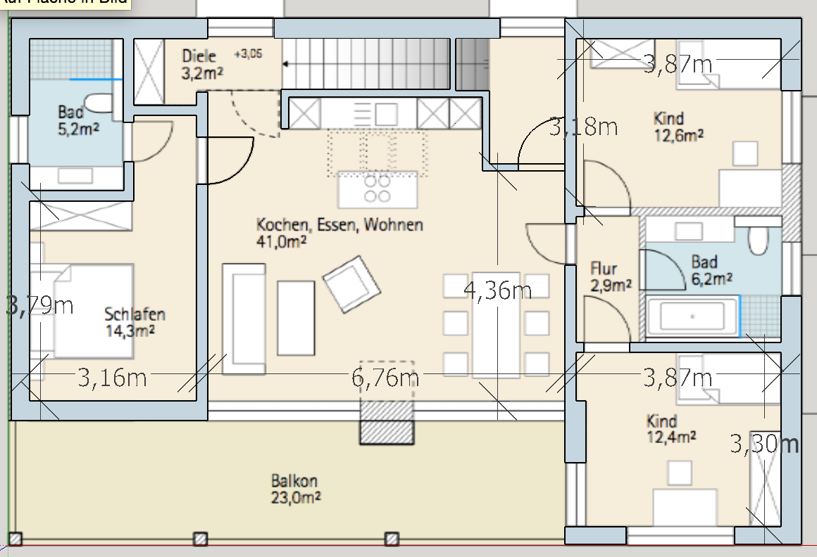 Mir fehlen aber wie Yvonne diverse Umgebungsparameter und Maße. Die Diele empfinde ich so jedenfalls für 4 Personen als zu klein. Man könnte da die Abtrennung zum Allraum weiter nach unten setzen, bis zur Nischwand Küche.