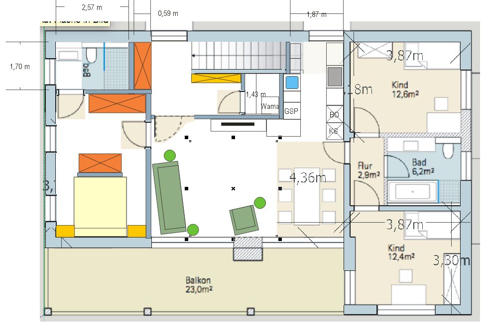 Der Schrank im Schlafzimmer geht da aber nicht. Sonst hätte man ja keinen Zugang zum Balkon.Was ist wichtiger? Südfenster im Schlafzimmer zum Balkon oder einen vernünftigen Schrankplatz?