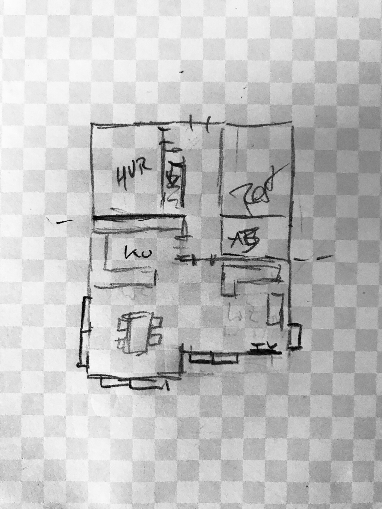 Es fällt übrigens gut auf, wo die Treppe besser aufgehoben ist als am Schmutzbereich Tür - nämlich dort, wo ich den AB markiert habe.