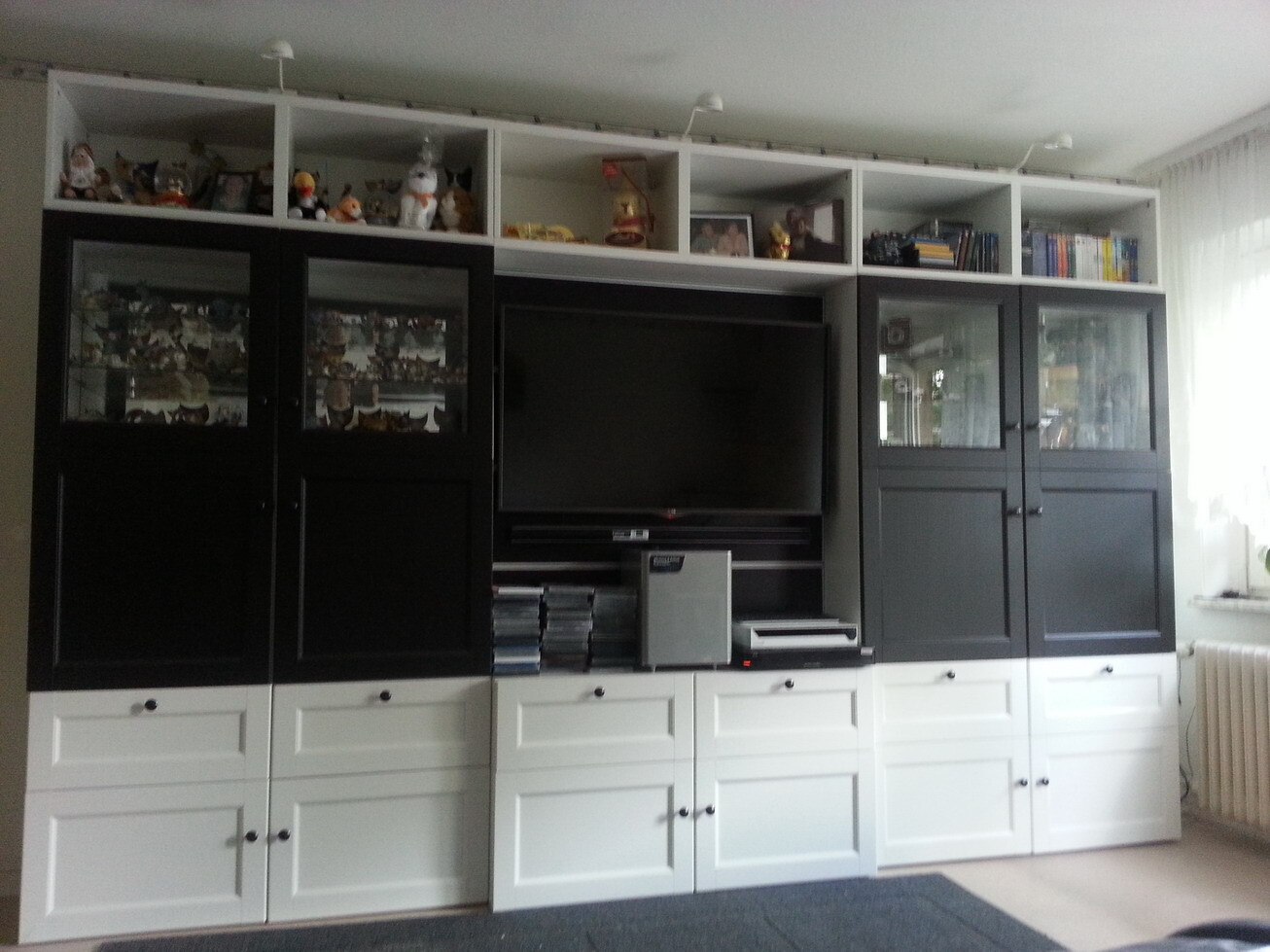 siehe Bild.Sieht super aus! Wie hast Du die obere Reihe realisiert? Liegen die links und rechts auf den Schränken oder sind sie Teil der Schränke?