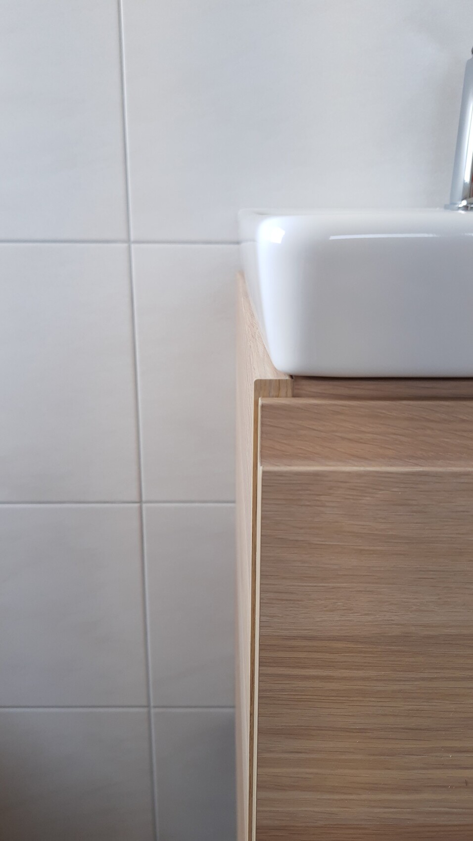 Das Waschbecken ist unten auch nicht eben, obwohl als Schrankwaschbecken beworben. Guckt man sich die Bilder in den Bad Shops an, sieht man aber auch bei der Kombi mit Villeroy & Boch Waschtischen einen Spalt.