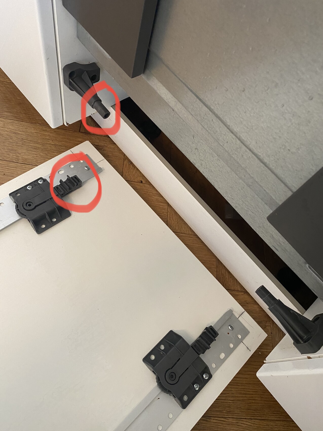 die Front meiner IKEA Hjälpsam Geschirrspüler fällt von jetzt auf gleich beim Öffnen jedes Mal aus der unteren Achse der Behjälplig Schiene (siehe Fotos). Zuerst auf der linken Seite, dann Rechts.