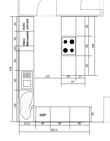Und am allerwenigsten vertraue ich der Mechanik von IKEA Rondellen. Der günstige Preis von diesen Unterschränken kommt ja nicht von ungefähr. Da hatte ich schon einige zu normalen Schränken umgebaut, weil den Kunden dann eine Ersatzbeschaffung der Mechanik einfach zu teuer war.Tote Ecke + 80er Unterschrank ist auch breiter als ein Eckunterschrank.