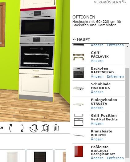 FÖRBÄTTRA Deckleiste und Beschlag im Planer beim Hochschrank für Kombiöfen dabei ist,