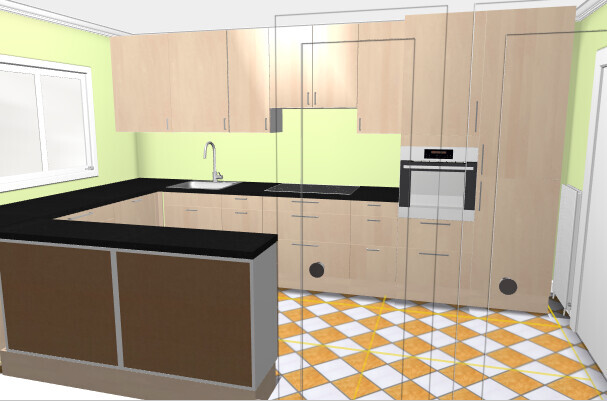 Bei der Spüle in der Ecke fehlt hinten Arbeitsplatte. Mit der Personlig sollte es kein Problem sein, die Ecke auszufüllen. Der Planer scheint das nicht zu können oder ich war zu doof.
