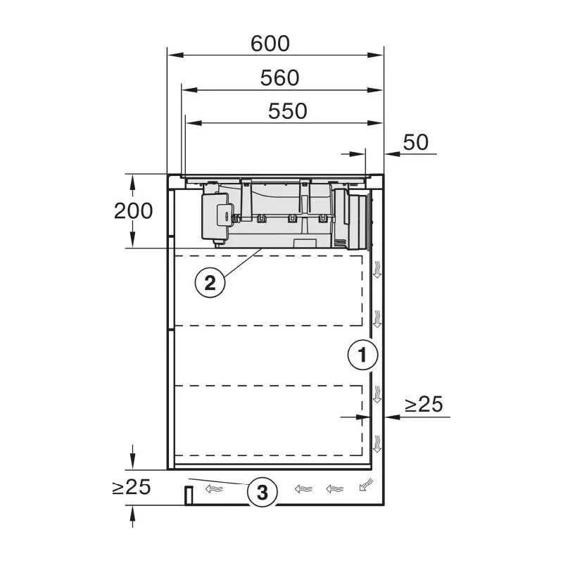 Danke für eure Antworten. Ich habe mir die Situation nochmal angeschaut. Die ungeführe Luft wird gegen die Wand geblasen und die Sockel haben durchgängig einen 1-2cm Schlitz. Ein Bogen oder ähnliches dass die Luft "runter" geleitet wird wurde nicht installiert und war auch beim AEG Gerät nicht dabei.