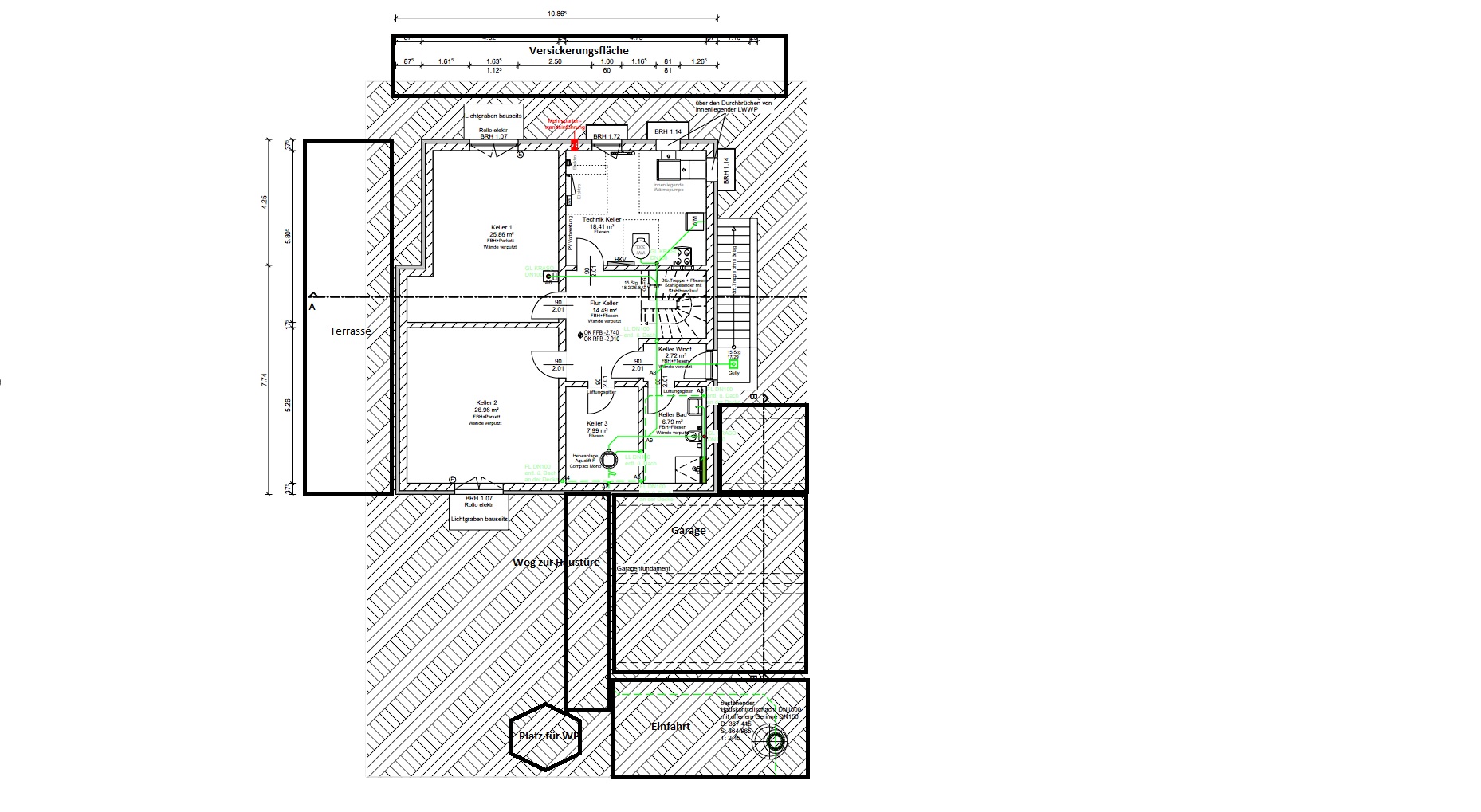 Keine Sorge der GU hat auch bei den Fenstern und der Treppe genug Einwände gehabt. Diese konnten aber alle gelöst werden. Die Fenster werden mit druckwasserdichten Kellerfenstern gemacht, natürlich nicht in der Größe wie eingezeichnet (den geänderten Plan habe ich noch nicht). Und auf die Kellertreppe kommt ein wasserdichtes Dach.
