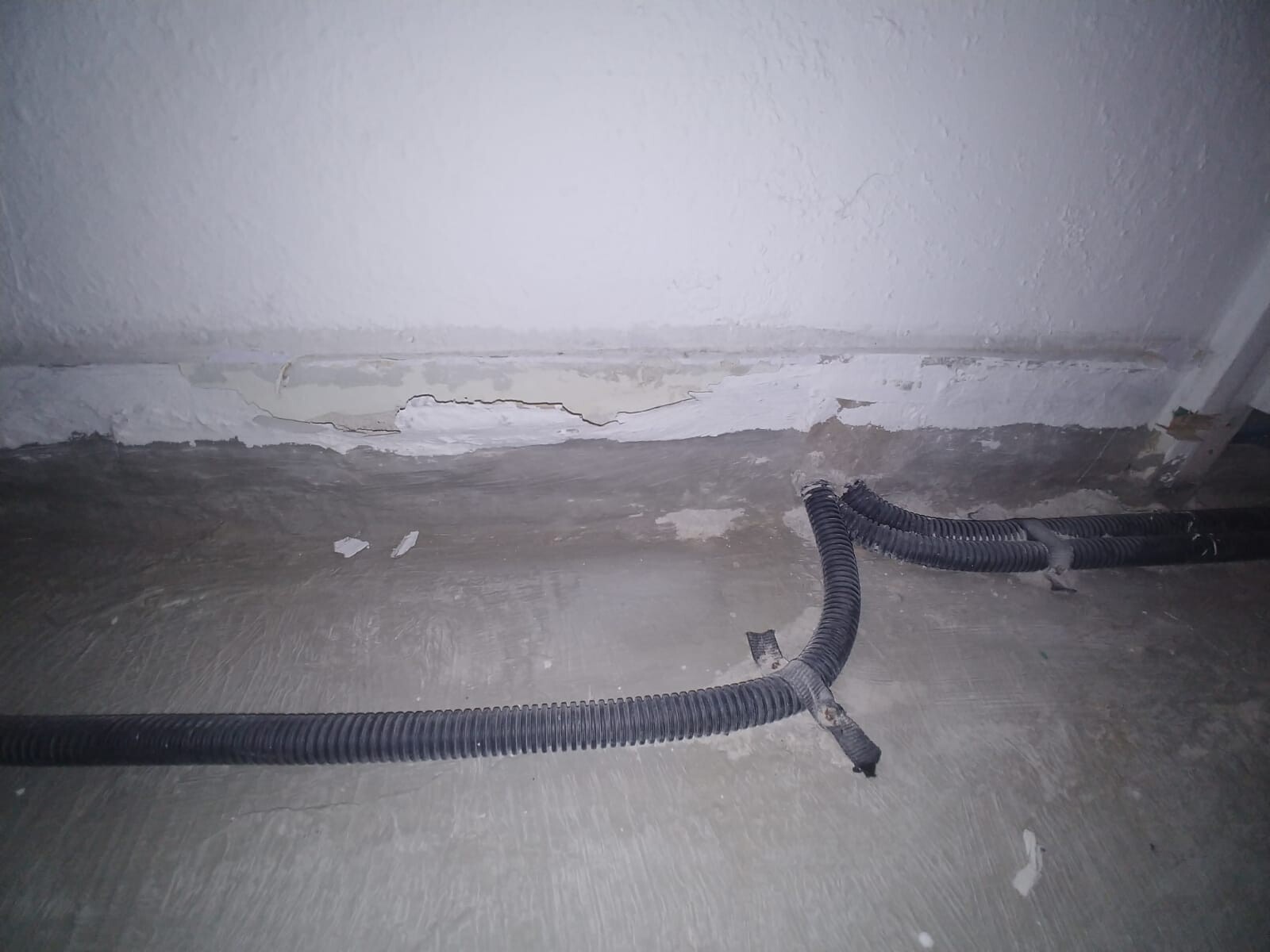 Wir hatten ja jetzt blöderweise einen teilorganischen Bodenaufbau mit Fermacell Trockenestrich, der eben durchfeuchten konnte und das im Rahmen auch getan hat. Erst dadurch entstand das manifeste Problem mit schimmelnden Möbeln und in den Bodenaufbau diffundierendem Wasser (s. Fotos 1, 2 und 3: abgelöstes Lastogum und dahinter bröckelnder Putz).