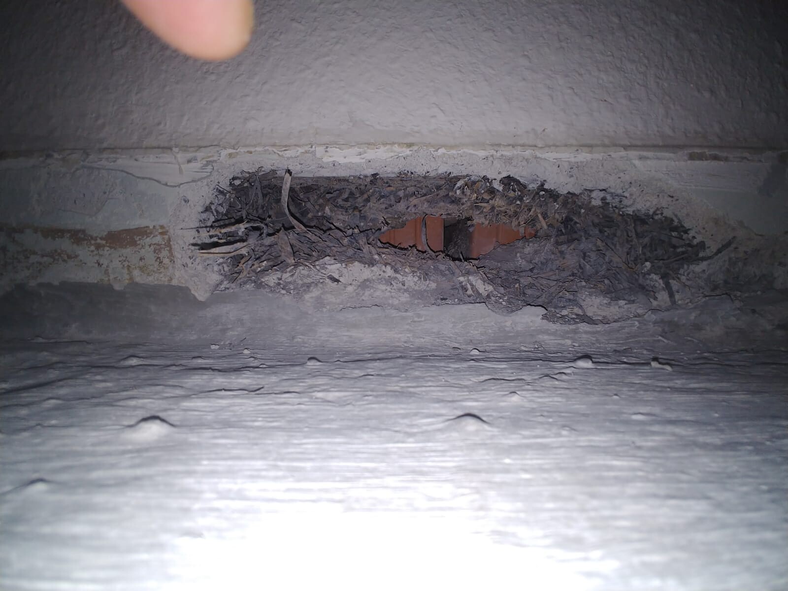 Zur Horizontalsperre: Diese ist offensichtlich durchgehend intakt (Messung mit der Gann Hydromette oberhalb und unterhalb der 1. Ziegelreihe: oben zw. 25 und 30 Digits, unterhalb 60 und mehr).